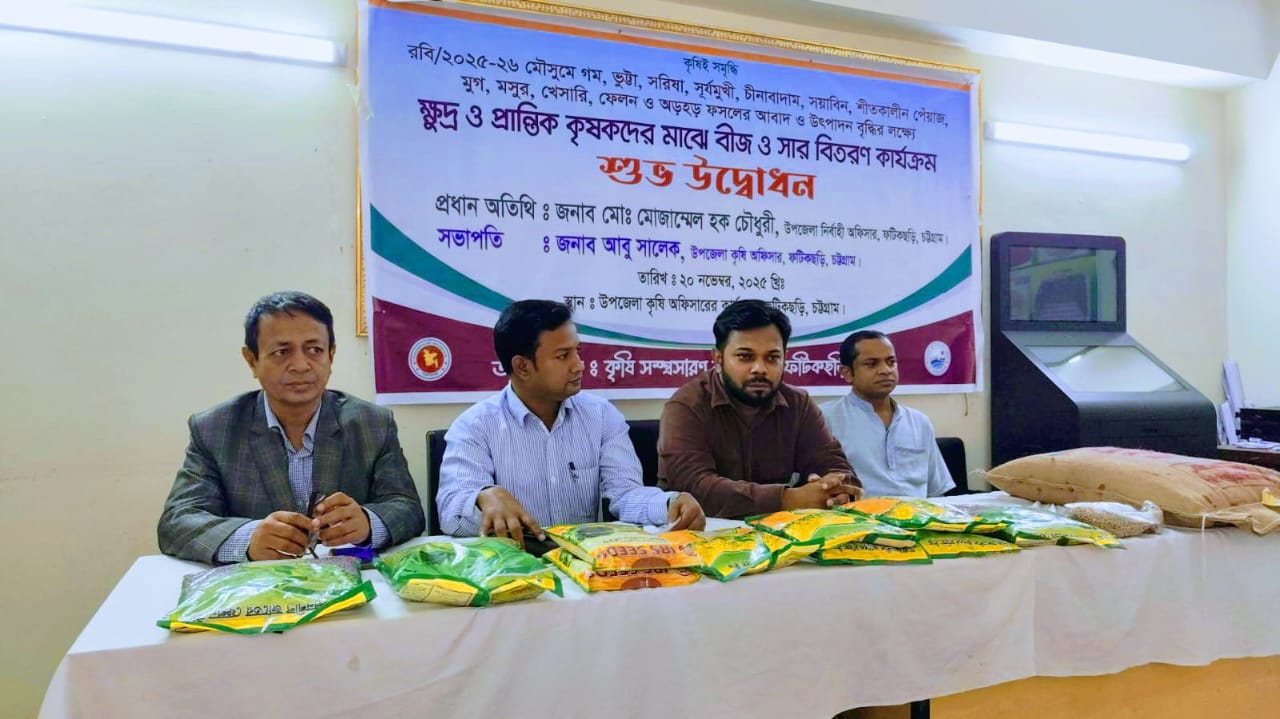 চট্টগ্রামের ফটিকছড়িতে ক্ষুদ্র ও প্রান্তিক কৃষকদের মাঝে রবি মৌসুম ২০২৫–২৬-এর বিনামূল্যে বীজ ও সার বিতরণ কার্যক্রমের উদ্বোধন করা হয়েছে।
